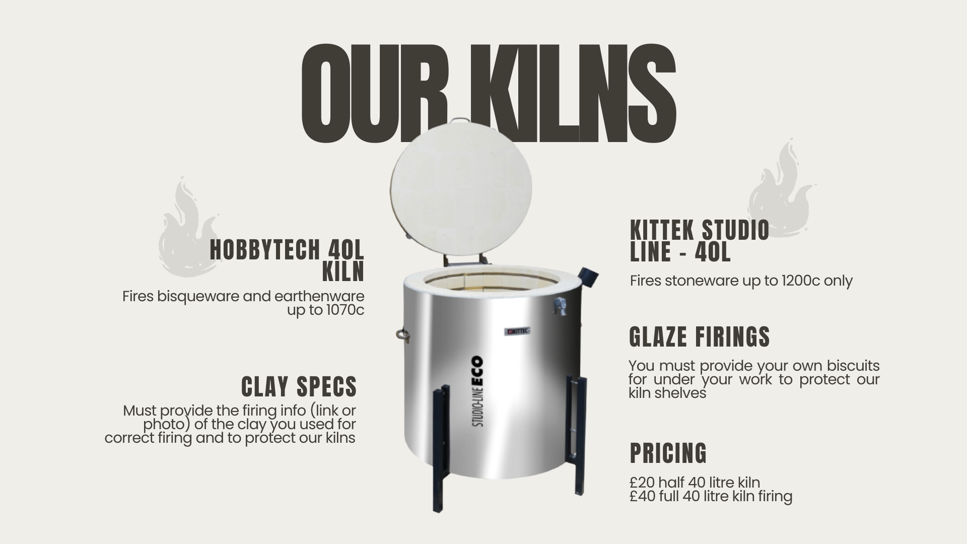 KILN FIRING SERVICEWe can offer kiln firings for Earthenware & Stoneware Pottery (900c - 1200c only)